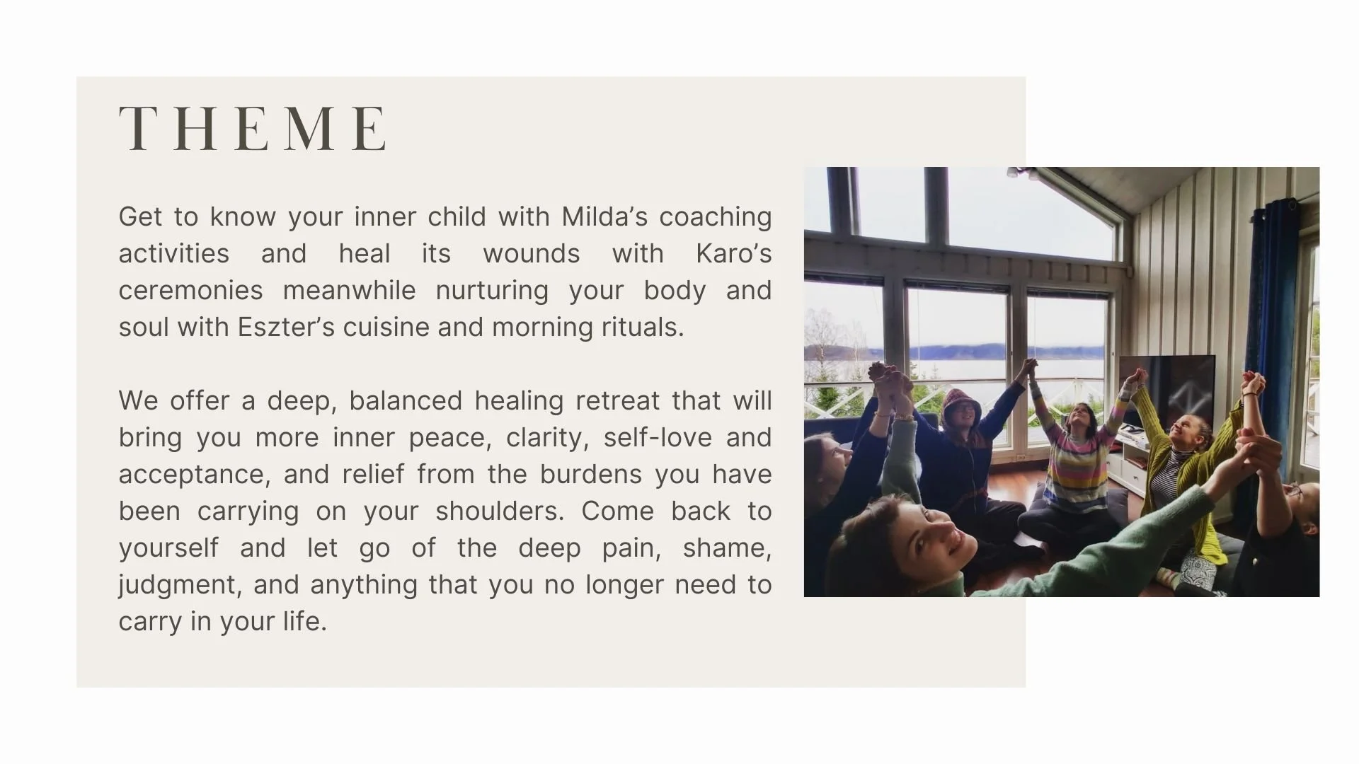 It all begins with an idea. We met during training and from the beginning knew we want to create a beautiful experience for others too. Healing practices, coaching tools, tasty food, and a safe space to be you - we can promise that!